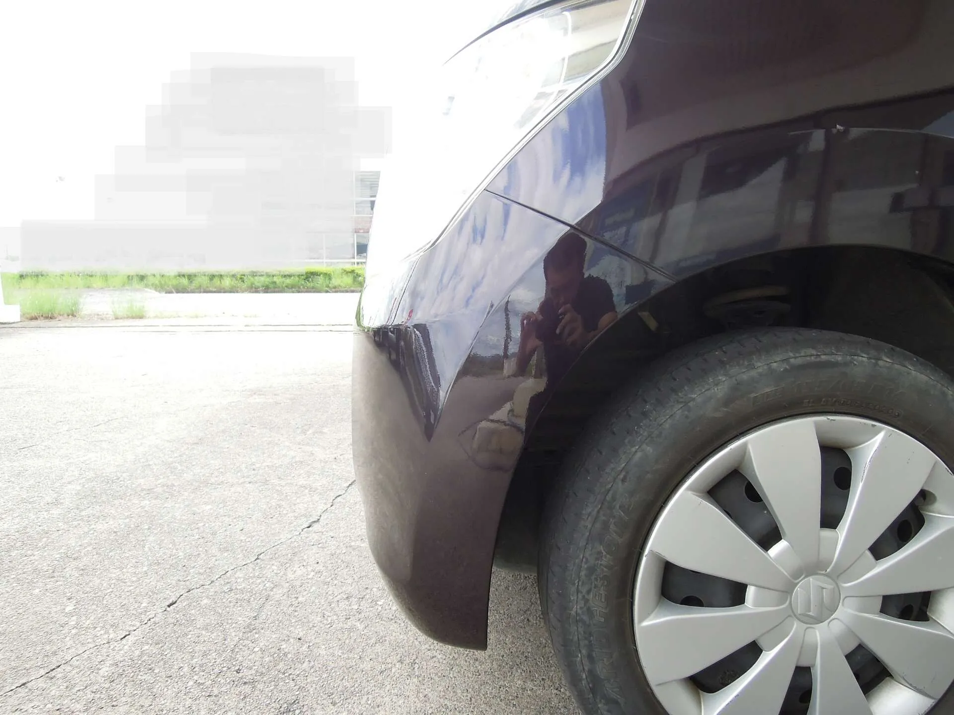 塀に接触してしまったようですが、幸いにもバンパー本体に割れや変形はなく、塗装面に軽く擦ったような浅いキズが確認できました。衝撃が小さかったため部品交換の必要はなく、鈑金塗装による部分補修で十分対応可能な状態でした。
