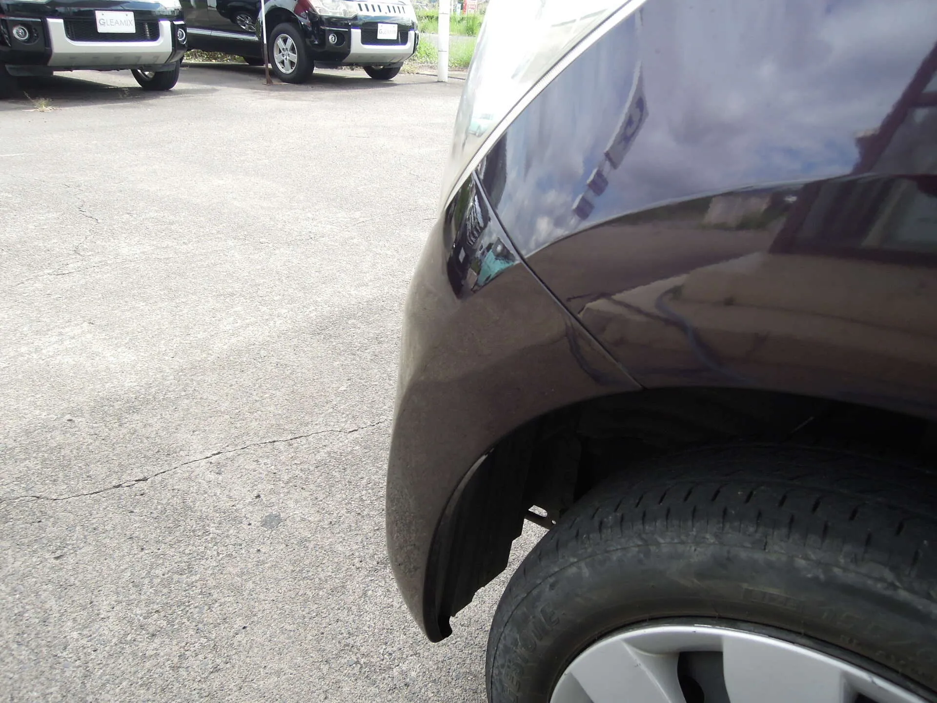 まずはキズの深さと範囲を丁寧にチェックし、必要な下処理を施したうえで塗装工程へ。お車のパープル系カラーは光の当たり方によって色味が微妙に変化するため、調色作業には特に気を配りました。元の色味と遜色のない自然な仕上がりを目指して、周囲のパネルとの色のなじみも含めて慎重に作業を進めました。