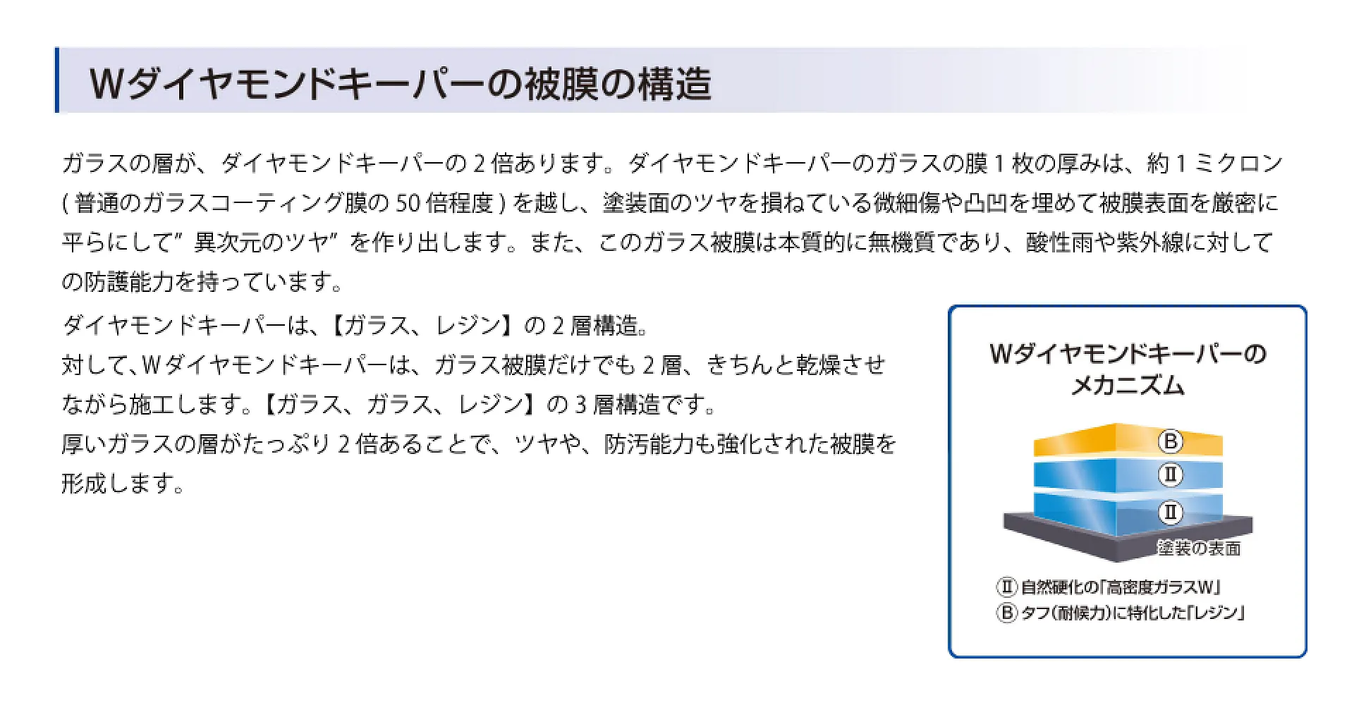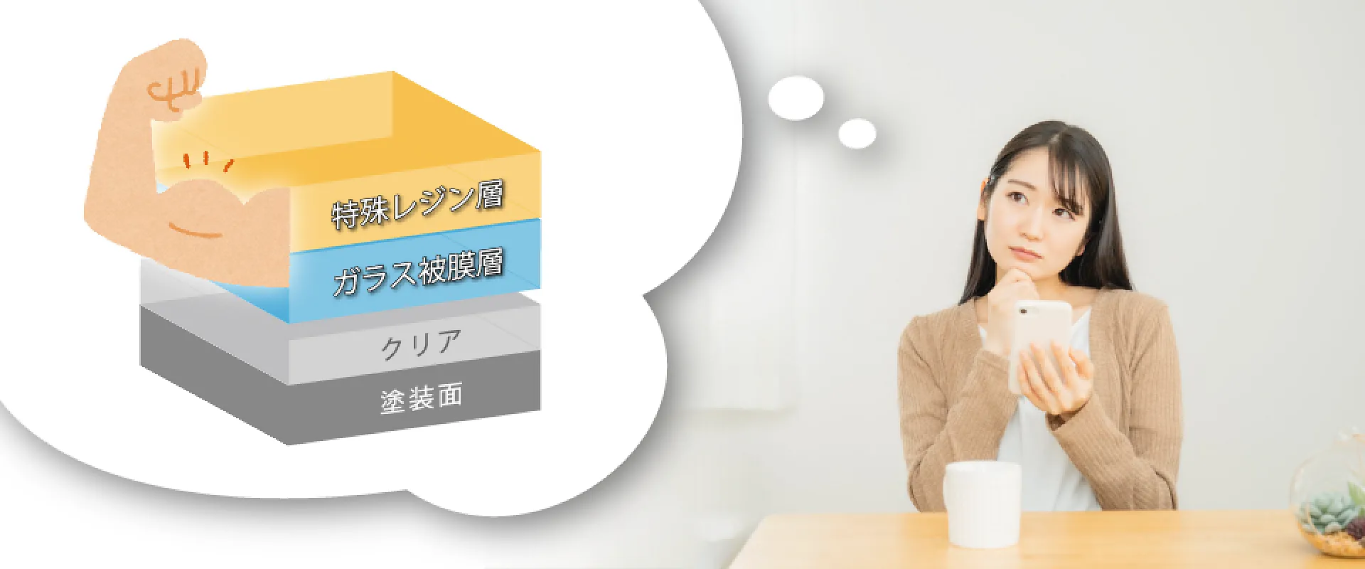 タフなガラス被膜と特殊なレジン被膜の2層構造のコーティングです。
