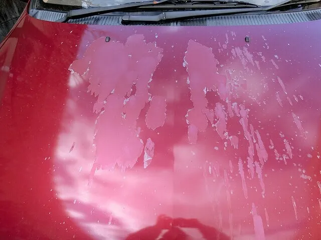 このようにクリア塗装がハゲている車を見たことがありませんか?これは紫外線や酸性雨などの刺激によって塗装面が劣化し、クリア層が剥がれ落ちてしまっている状態です。