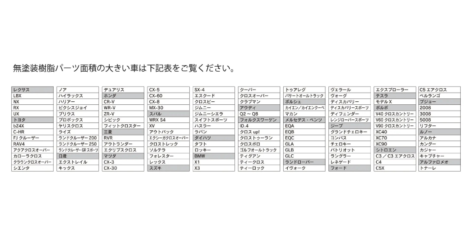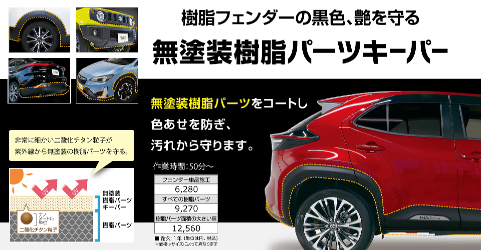 最近の車には、無塗装の樹脂で出来たフェンダーを装着した新車が多く出ています。