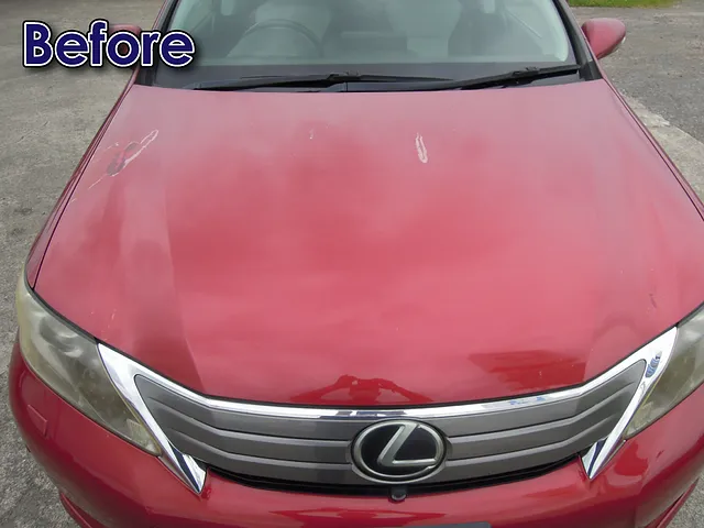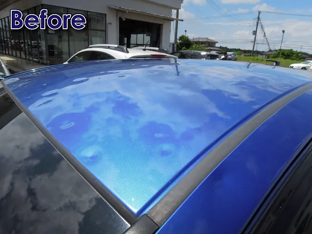 塗装面のクリア剥げのご相談も多くいただきます。クリア剥げの原因は「酸性雨」「紫外線」「鳥フン」「塩害」など様々ですが、どの車種でもどの色でも、日常的に塗装面には負担がかかっています。このようにクリア層が剥がれ落ちてしまうと、お気に入りのお車も一気に古びた印象になってしまいます。