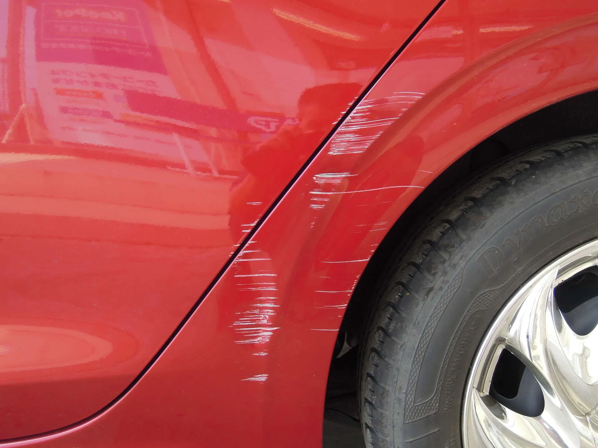 茨城県稲敷郡にお住まいのS様より、プジョー208の鈑金塗装修理をご依頼いただきました。左リアドアから左リアフェンダーにかけての多少のヘコミを伴うすり傷の修復作業です。鮮やかなレッドのボディカラーであるため、補修跡が目立たないよう細部まで丁寧に仕上げることを心がけました。