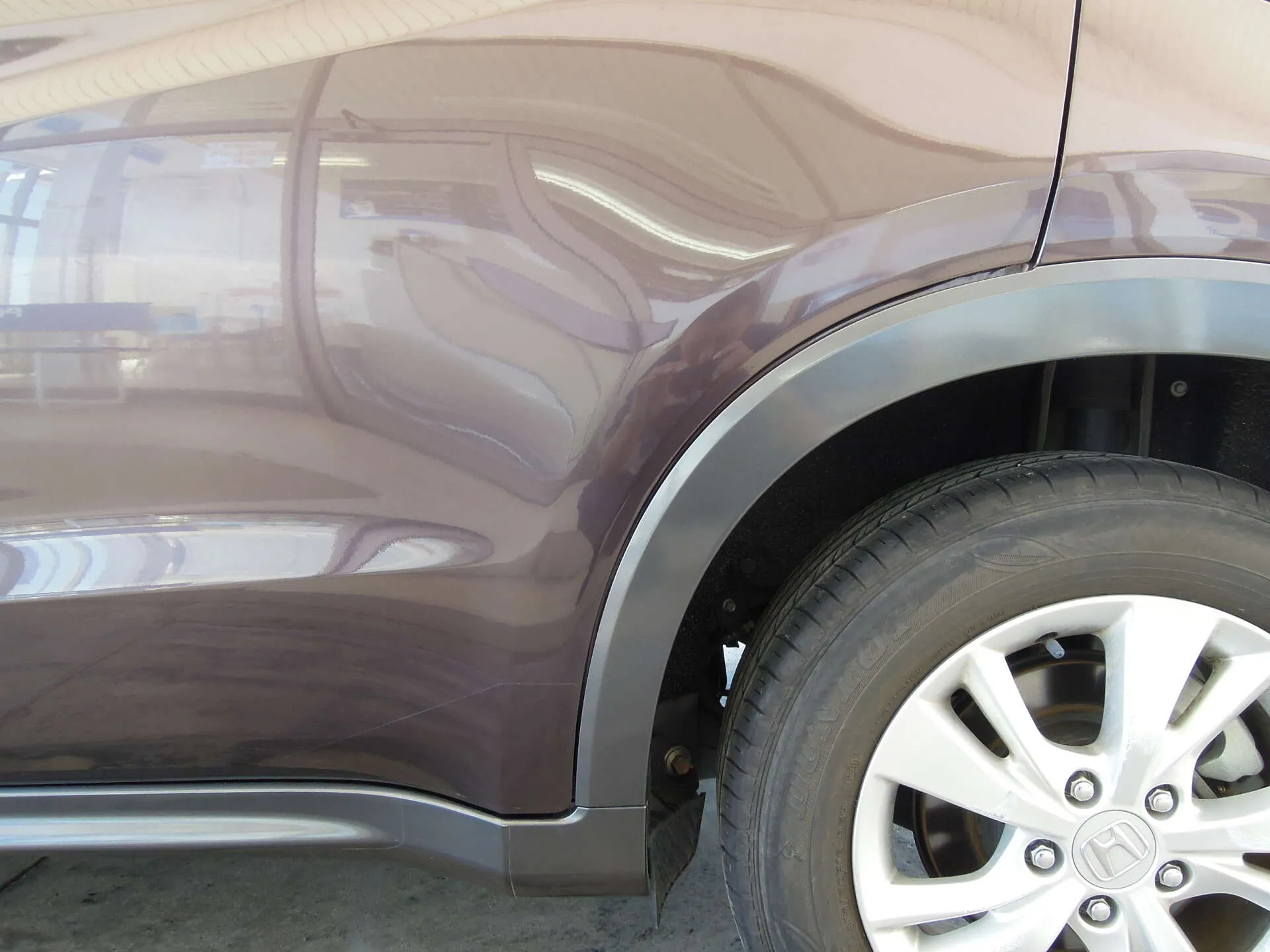 千葉県松戸市にお住まいのT様より、ホンダ・ヴェゼルの鈑金塗装修理をご依頼いただきました。今回の修理内容は左リアフェンダー付近にできたすり傷とプロテクターリアホイールアーチの損傷部分です。軽度のサビも見受けられましたので、このまま放置するとサビによる劣化も進んでしまいますので、できるだけ早めの修理が望ましい状況でした。ボディカラーは赤紫系の個性的で発色の良い色味であるため、修理後の色合わせには特に注意を払い、違和感のない仕上がりを目指しました。