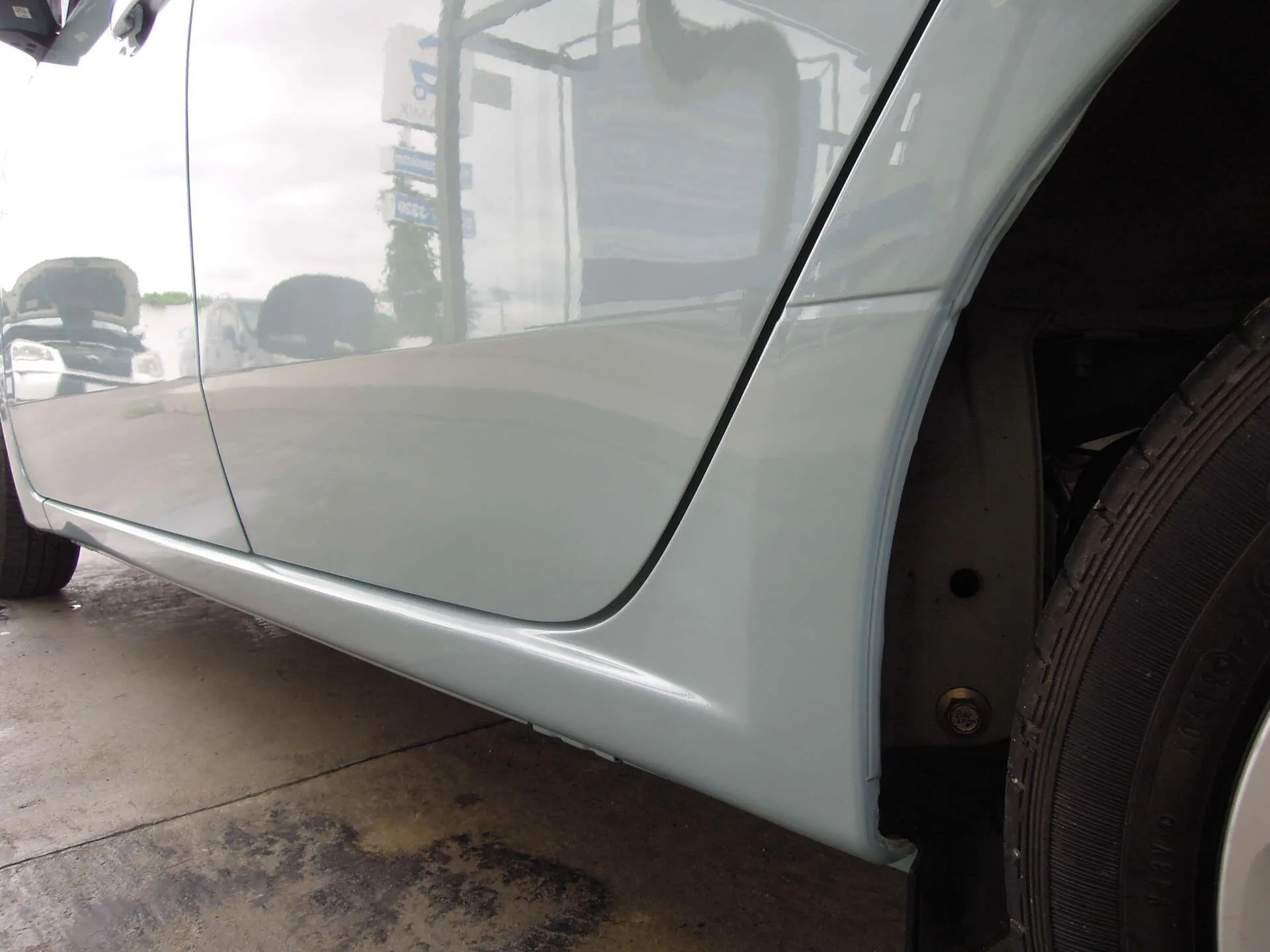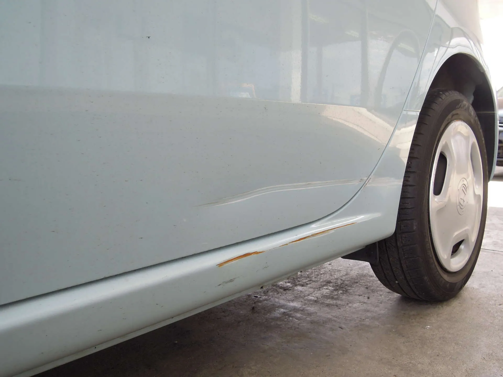栃木県小山市にお住まいのA様より、ホンダ・N-ONE(DBA-JG1)のキズヘコミ修理のご依頼をいただきました。お車のカラーは明るく爽やかな印象のライトブルー。今回のご相談内容は左リアドアと左サイドステップにできた線キズと、それに伴うヘコミの修復です。拝見したところキズは鋭利なもので付いたようで、ドアパネルとサイドステップにはしっかりと凹みが見られました。また、傷口の一部には小さな錆の発生も確認され、放置すれば徐々に腐食が広がるリスクもある状態。A様も「これ以上悪化する前にきちんと直しておきたい」とのことで、早めの修理をご希望されていました。ホイールキャップにも傷がついておりましたが、こちらはそこまで気にならないとのことで、今回はそのままとなりました。お車を大切にされている様子が伝わり、私たちも丁寧な修理で応えたいという気持ちが高まりました。