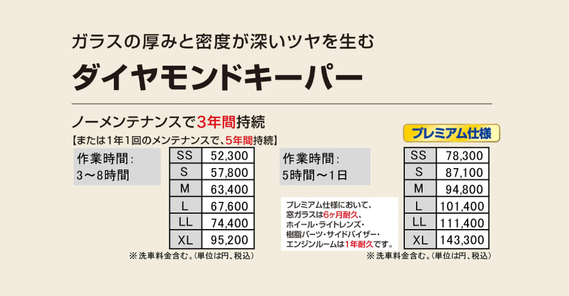 「この車のサイズは?」「いくら?」「これとこれで迷っている」などなど、コーティングの種類も豊富なため、どのメニューにしようか迷っている方も、どうぞお気軽にご相談ください!